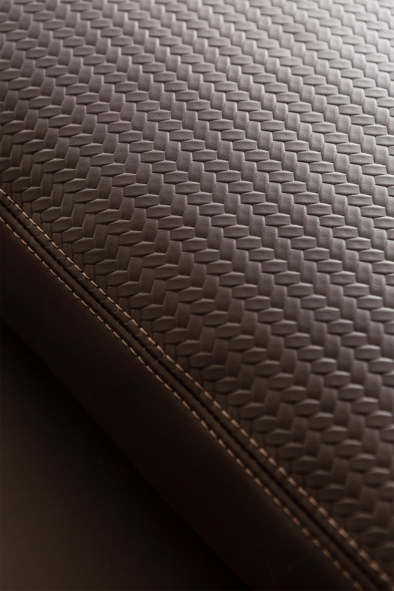 扶手包的接觸面選用壓人字編織紋的皮革,