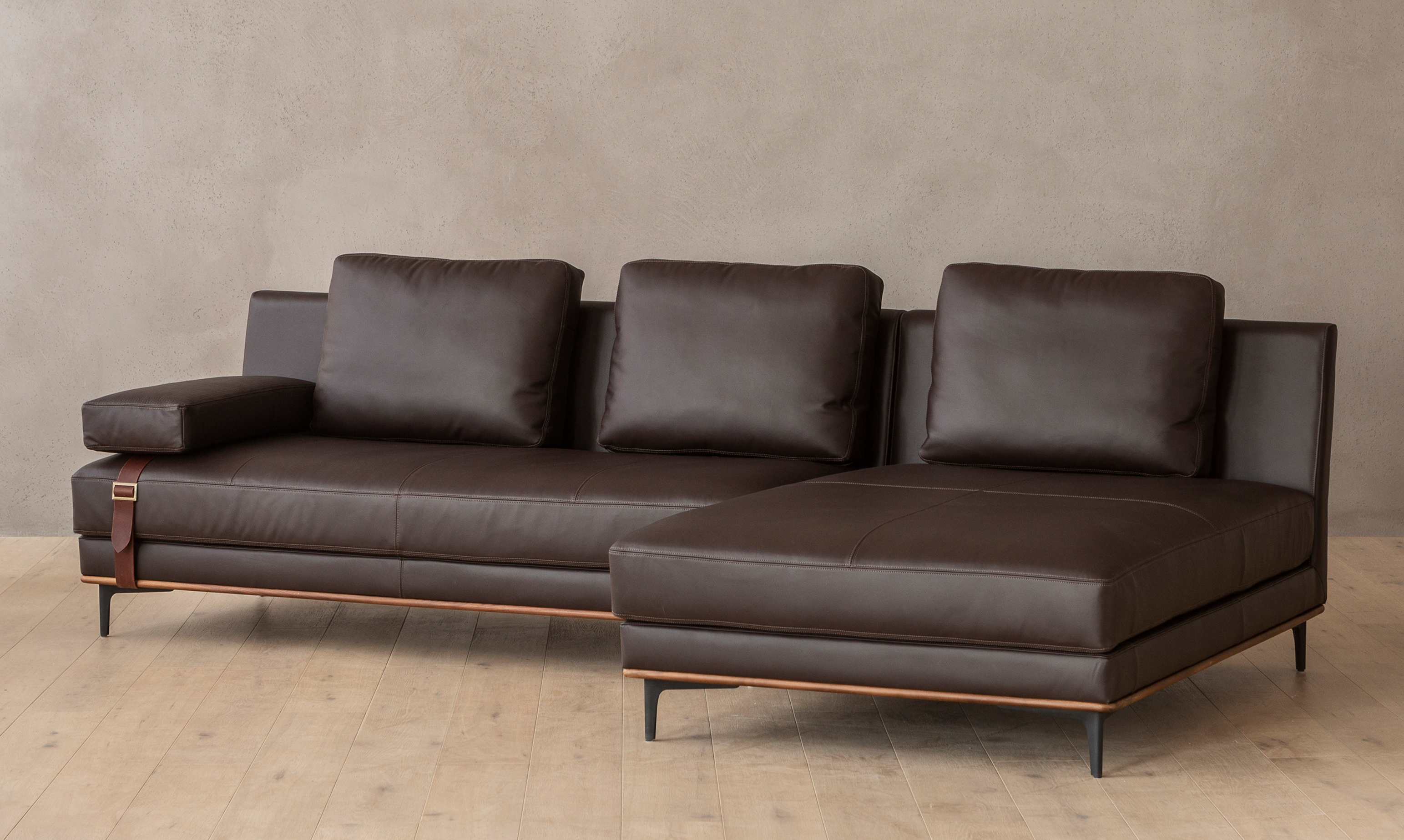扶手包特別設計可依個人需求,用植鞣革皮帶固定在沙發的左側與右側。