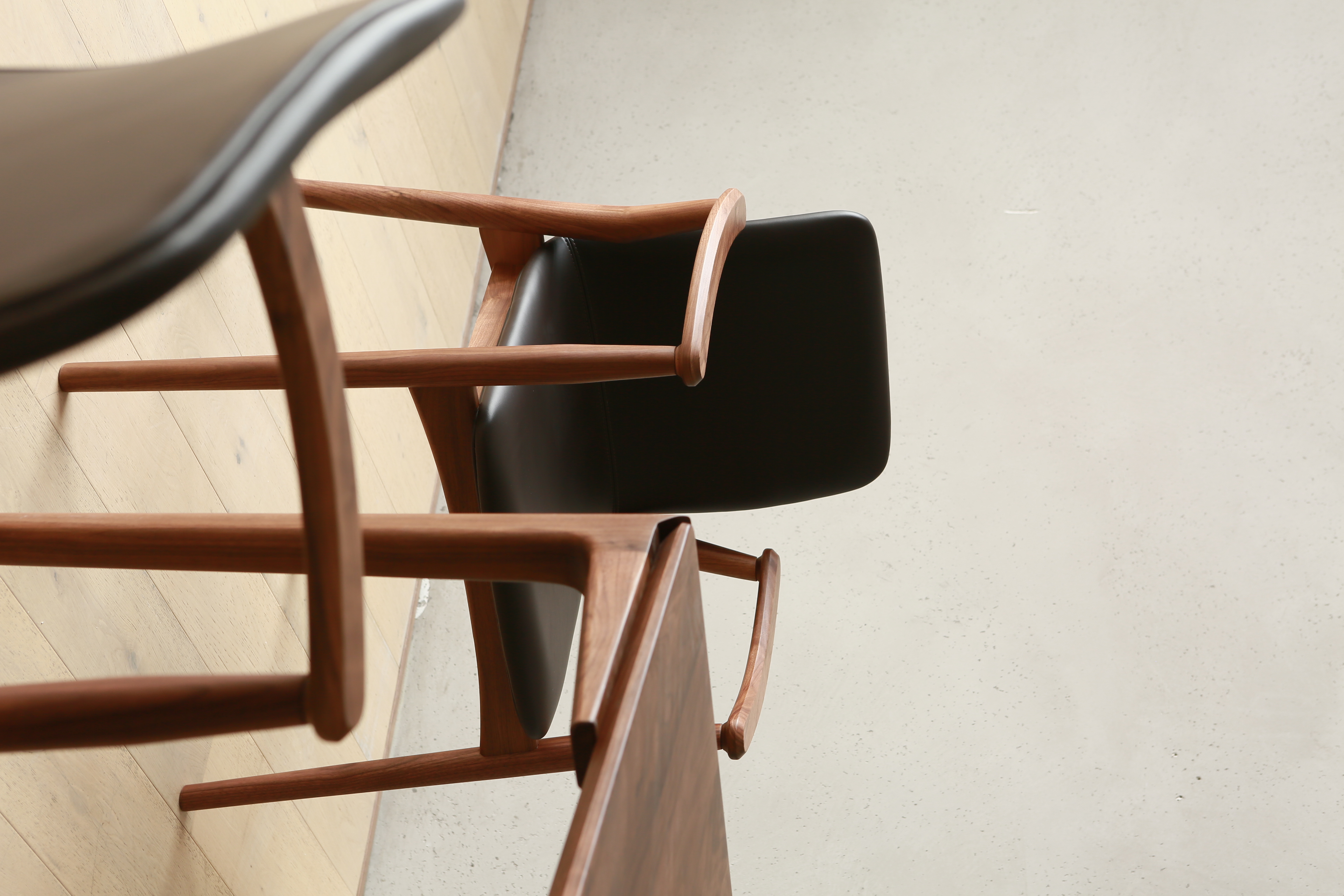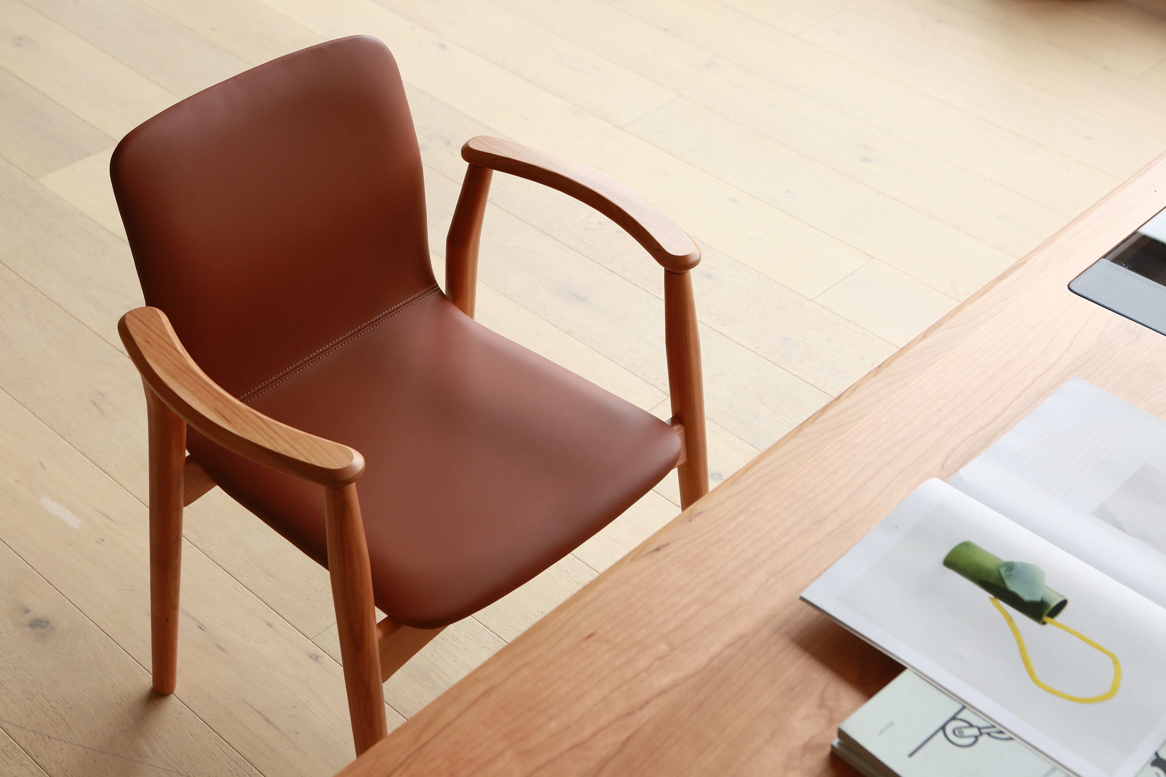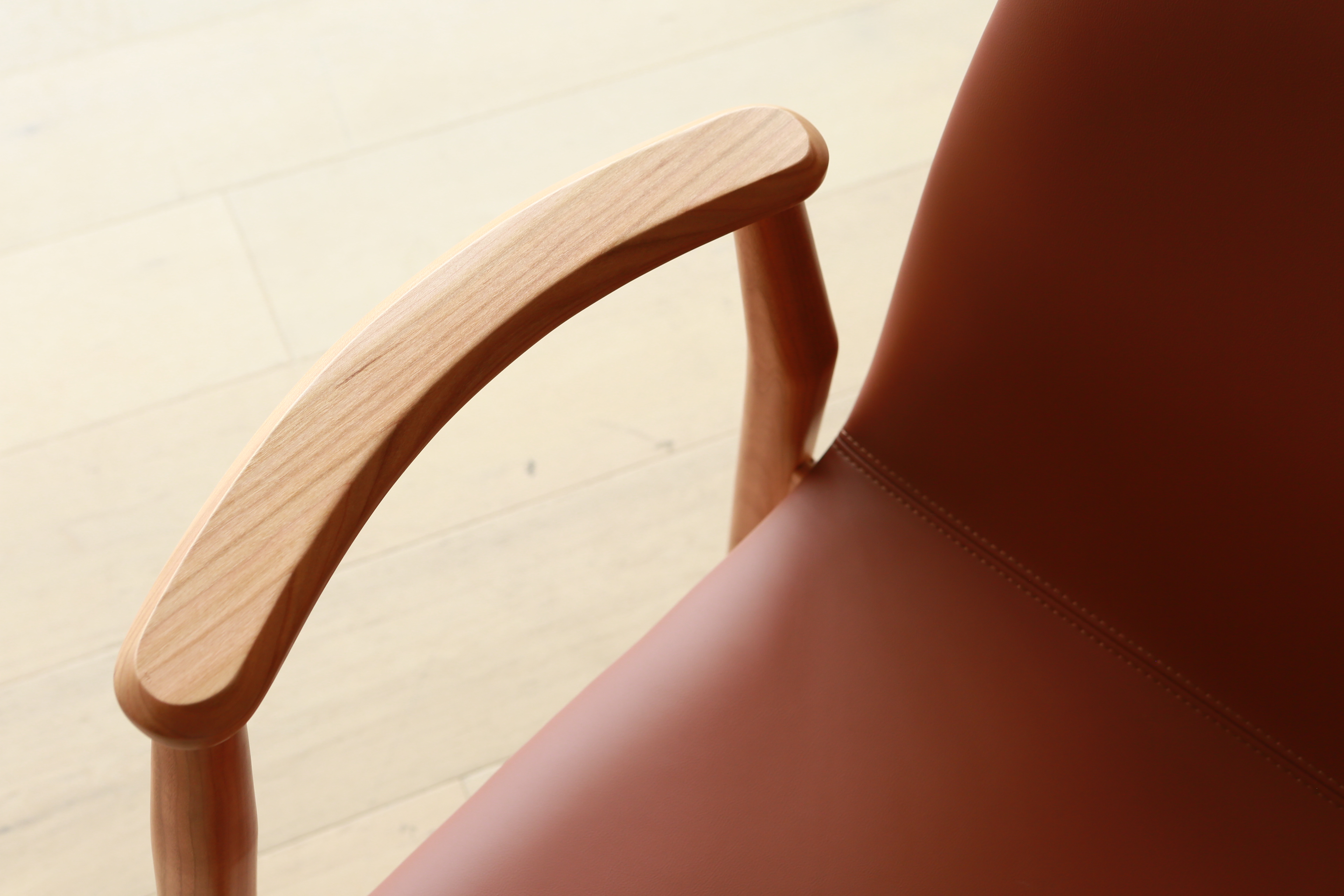 括號形扶手的設計,提供寬闊的坐落空間,也帶來溫潤細膩的實木觸感。